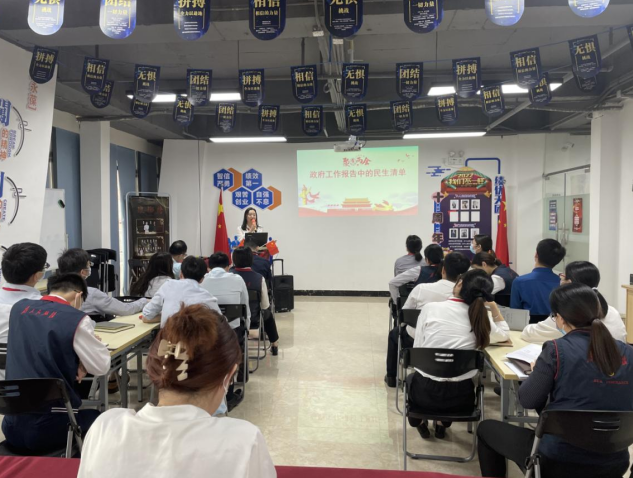 2022年3月18日,华夏保险河源中支举办“两会”精神学习专题党课,组织全体党员、职工集体学习第十三届全国人大五次会议精神和《政府工作报告》精神,并对两会最受关注的社会热点问题进行讨论分享。