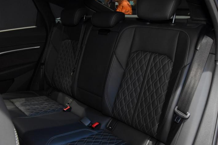 新车前脸的设计与奥迪e-tron Sportback如出一辙,只是奥迪e-tron Sportback看上去要更加凶狠一些。银色的镀铬装饰条很有未来气息,外加上淡蓝色的车身,视觉上更加动感。车身侧面设计了一个橘黄色的刹车卡钳,与淡蓝色的车身形成颜色的冲击力,侧裙位置的线条也呈上扬趋势设计,保障了汽车行驶时的动感表现。贯穿式的尾灯与突出的扰流板相搭配,更有时尚气息。